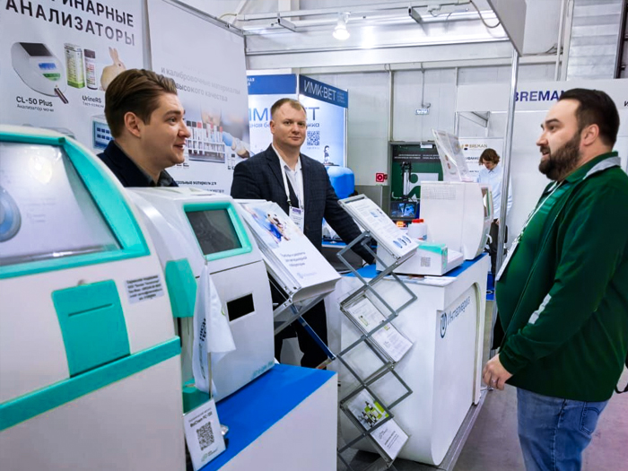На нашем стенде были представлены оборудование и реагенты для ветеринарной лаборатории: биохимические анализаторы, анализаторы ОАК, анализаторы электролитов и газов крови, анализаторы мочи и тест-полоски.